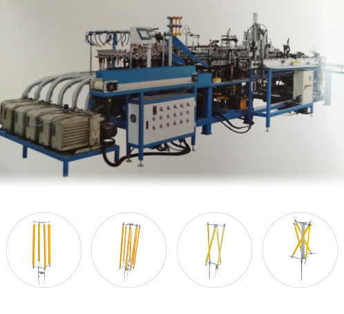 本公司現推出的點焊封排連線一體機,點焊封排連線將芯柱在自動點焊機上完成焊接工序后通過機械手放入儲料輸送帶,在輸送帶上完成燒絲工序后傳送到封排機上料位,通過機械手將芯柱放入封排機上料盤的工作。由此來減少勞動力與傳料轉運的損耗和時間。生產效率以封排產量為基數,通常為1200支/時,點焊機產量跟隨輸送帶上的芯柱數量有PLC自動調速。本機實現自動上泡殼,自動上芯柱,成品率高。